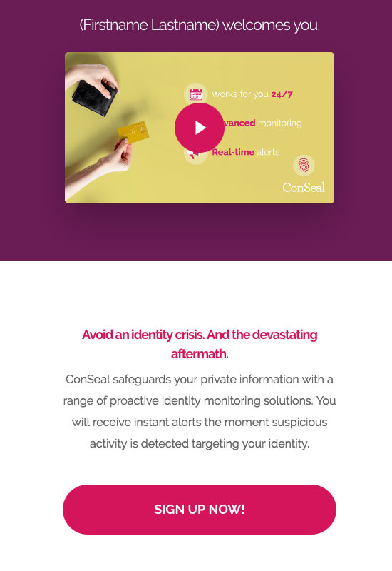 LINKS TO FULL ENROLLMENT. Use these links to share ConSeal with your prospects. These links go to a page with the video, a brief description of the product, a lead capture page and an enrollment link. This is a great follow-up tool, a pique interest tool, or a direct link for someone interested in one specific service.